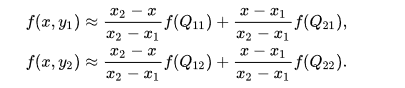 先在x方向上进行linear interpolation