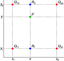 在数学上,双线性插值是有两个变量的插值函数的线性插值扩展,其核心思想是在两个方向分别进行一次线性插值。