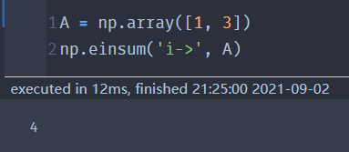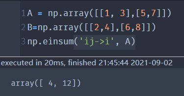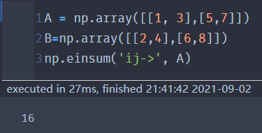 可以看成'ij->0' 结果的第0位是A的第i行第j列的元素,再求和 |