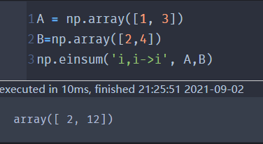 'i,i->i':结果的第i位,是A和B的第i位的积 |