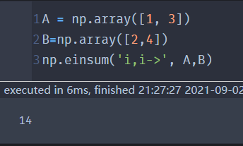| ('i,i->i', A,B) | 向量A,B对应位置相乘