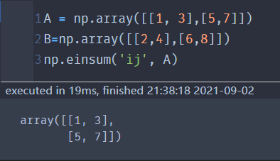 | ('ji->ij', A) | 返回矩阵A的转置
