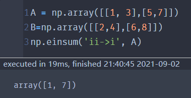 | ('ii->i', A) | 矩阵A的对角线元素