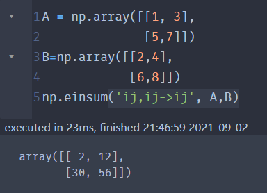 | ('ij,ij->ij', A,B) | 矩阵A,B相应位置的乘积