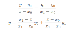先讲一下线性插值:已知数据 (x0, y0) 与 (x1, y1),要计算 [x0, x1] 区间内某一位置 x 在直线上的y值(反过来也是一样,略):