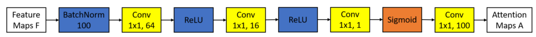 ①ReSNet的输出将首先放入Net-B中,它由一个卷积层(100,20×20)和一个ReLU激活层组成,以提取特征并使其与注意网的输出相同。