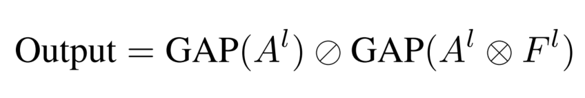③为了创建图像的掩码M,我们会将应用特征图F与注意力图 A进行乘法运算。然后,我们分别对掩码M和注意力图A 进行全局平均池化(GAP)运算,从而减少参数避免过拟合。