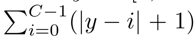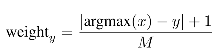 它定义了由预测类x与实类y之间的最大差值计算出的类之间的差距,而C是类的数量。权重通过所除以所有情况的积累M来进行标准化。