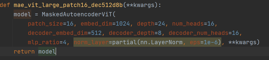 对于第一局 getattr(models_mae,arch): 是取models_mae模块里的arch 而这个arch是什么 下图可以看到是一个函数 而且是一个没带括号的函数 (我不理解 ) 所以get后要补一个括号