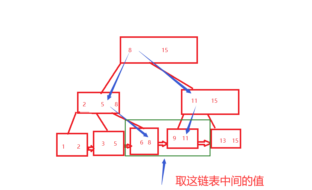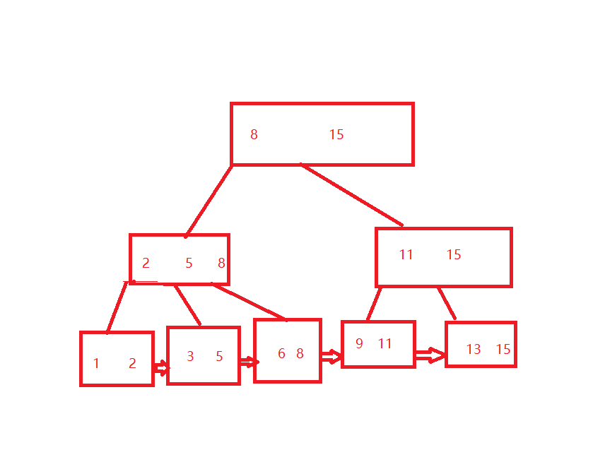 B+树做出的改变:这里大家看见看见重复了最后也是一个8,大家别急着说浪费空间,可能也是一个改进