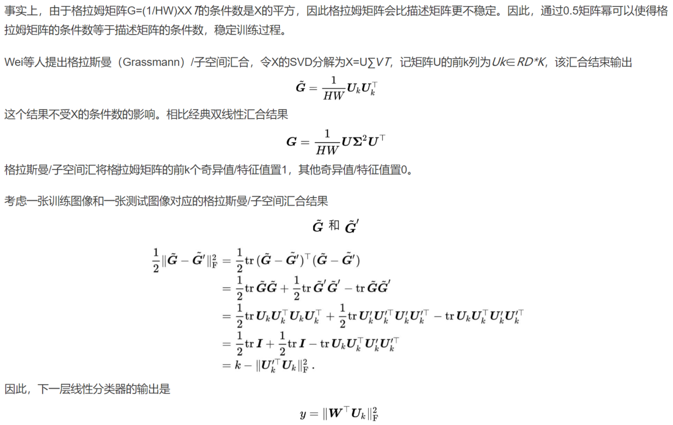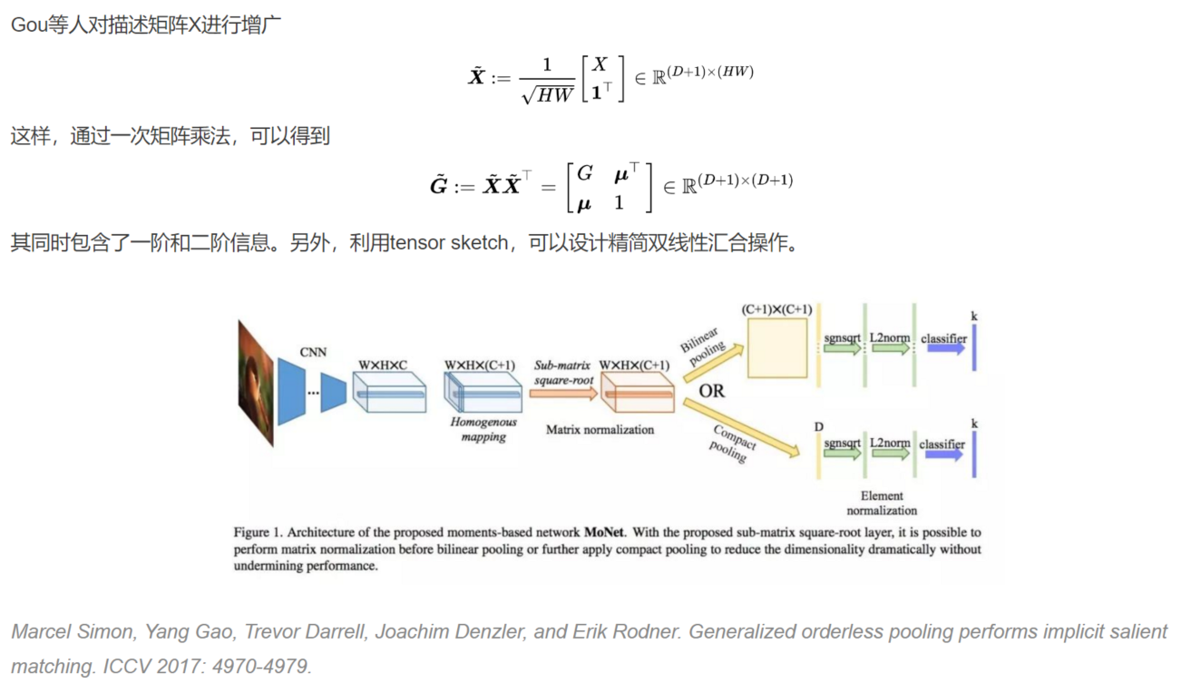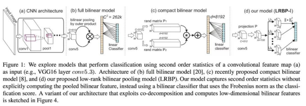 Yu和Salzmann对参数矩阵进行低秩近似,并给双线性汇合的每一步一个概率上的解释。这个操作可以被等价为对深度描述向量进行1X1卷积后在 l2 汇合。