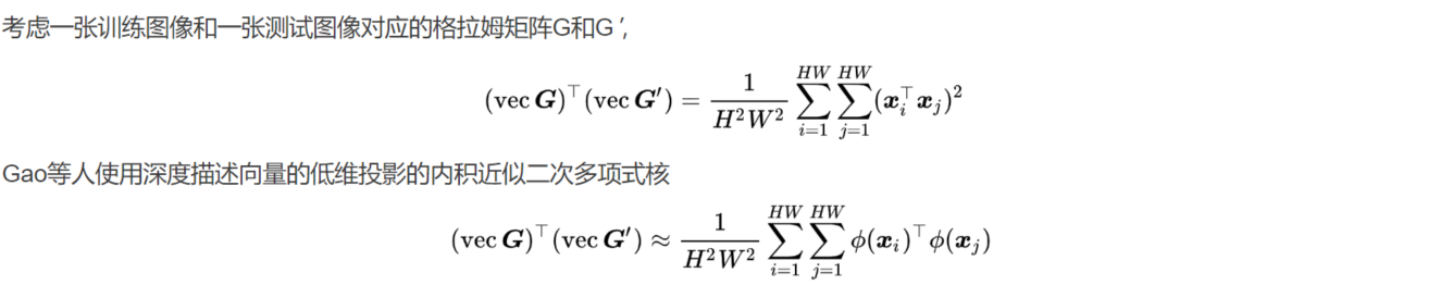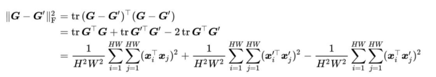 Li等人发现,考虑一张训练图像和一张测试图像对应的格拉姆矩阵G和G',风格损失项
