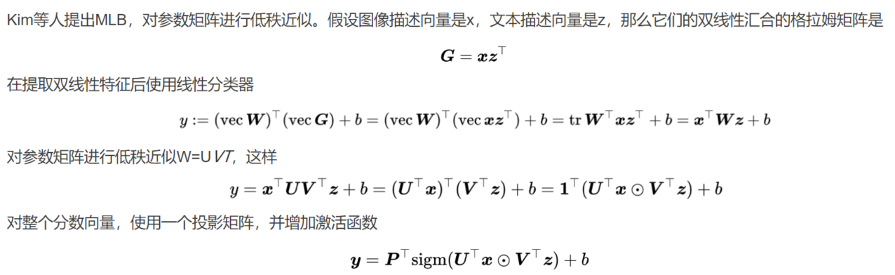 Fukui等人提出MCB,对图像和文本特征进行精简双线性汇合。