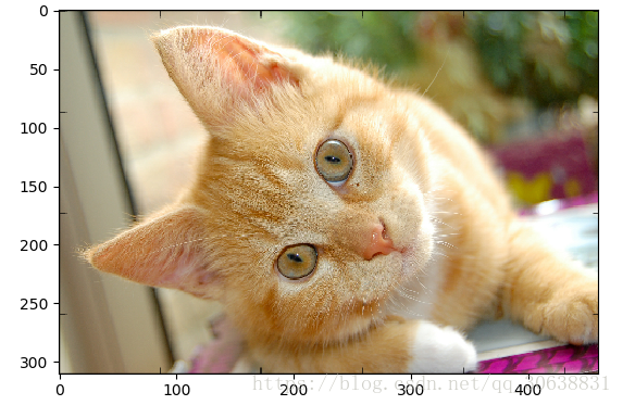 import matplotlib.pyplot as plt import tensorflow as tf import numpy as np image_raw_data = tf.gfile.FastGFile('./datasets/cat.png','rb').read() with tf.Session() as sess: image_data = tf.image.decode_png(image_raw_data) # 上下翻转 # flipped1 = tf.image.flip_up_down(img_data) # 左右翻转 # flipped2 = tf.image.flip_left_right(img_data) # 对角线翻转 transposed = tf.image.transpose_image(image_data) plt.imshow(transposed.eval()) plt.show() # 以一定概率上下翻转图片。 # flipped = tf.image.random_flip_up_down(img_data) # 以一定概率左右翻转图片。 # flipped = tf.image.random_flip_left_right(img_data)