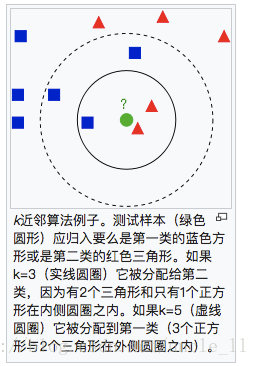 - 在k-NN分类中,输出是一个分类族群。一个对象的分类是由其邻居的“多数表决”确定的,k个最近邻居(k为正整数,通常较小)中最常见的分类决定了赋予该对象的类别。若k = 1,则该对象的类别直接由最近的一个节点赋予。
