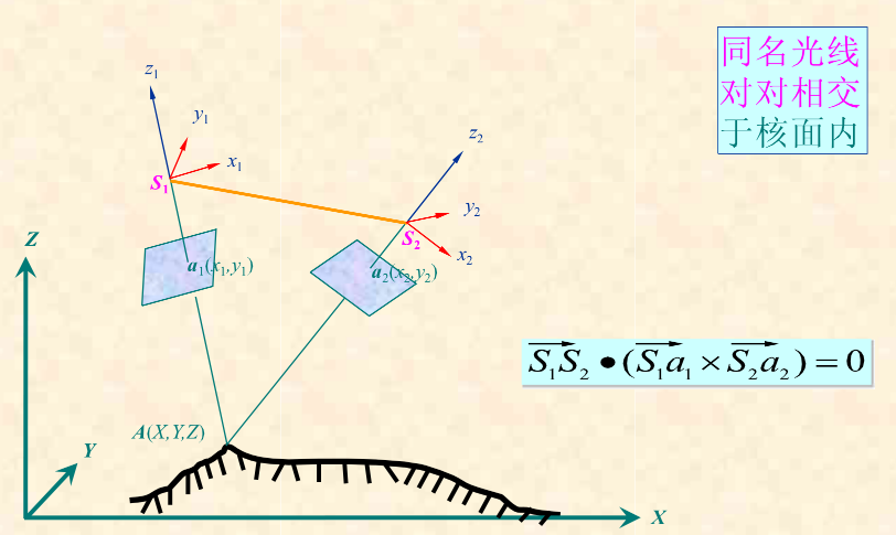 在这里介绍相对定向是为了下一步的核线影像生成,主要讲解连续法相对定向,需要同名点坐标(特征匹配算法即可得到)。