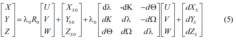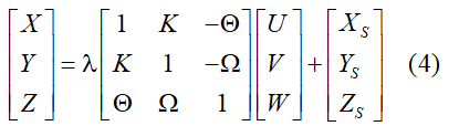 Ω、K计算出来的方向余弦,(XS,YS,ZS)为坐标原点的平移量,称七个参数XS,YS,ZS,