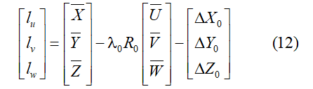 实际计算绝对定向元素时,常选模型的重心为坐标原点将坐标重心化,这种数据处理方法的好处是:可以减少模型点坐标在计算过程中的有效位数,以保证计算精度;可以使法方程系数简化,个别项的数值变为零,部分未知数可以分开求解,从而提高了计算速度。