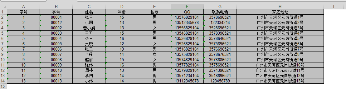 2、Excel文件数据: