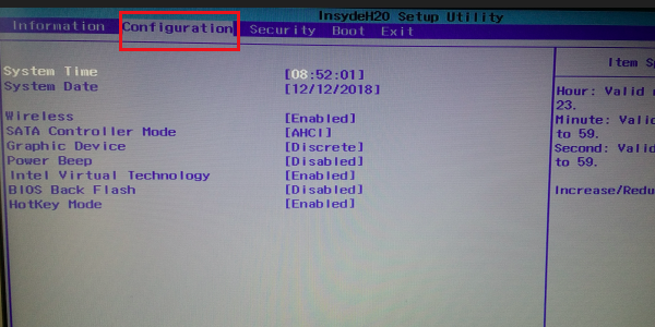 6.通过方向键,移动到hotkey mode选项,点击回车,将enabled转为disabled,回车确定