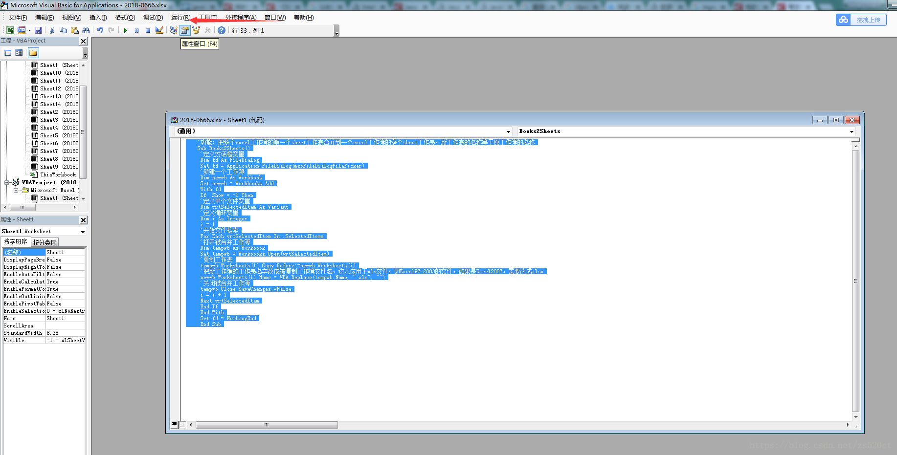 '功能:把多个excel工作簿的第一个sheet工作表合并到一个excel工作簿的多个sheet工作表,新工作表的名称等于原工作簿的名称
