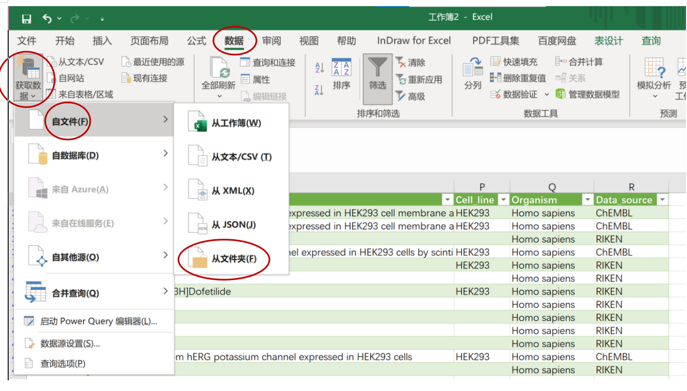 2、打开新建的文件,选择菜单栏中“数据”→“获取数据”→“自文件”→“从文件夹”,选中文件夹。