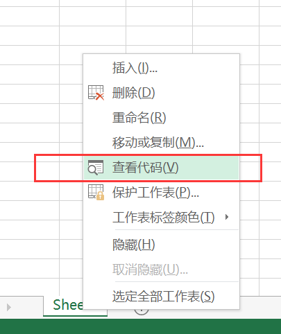 2、在新建的sheet标签上单击右键,选择【查看代码】;