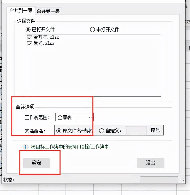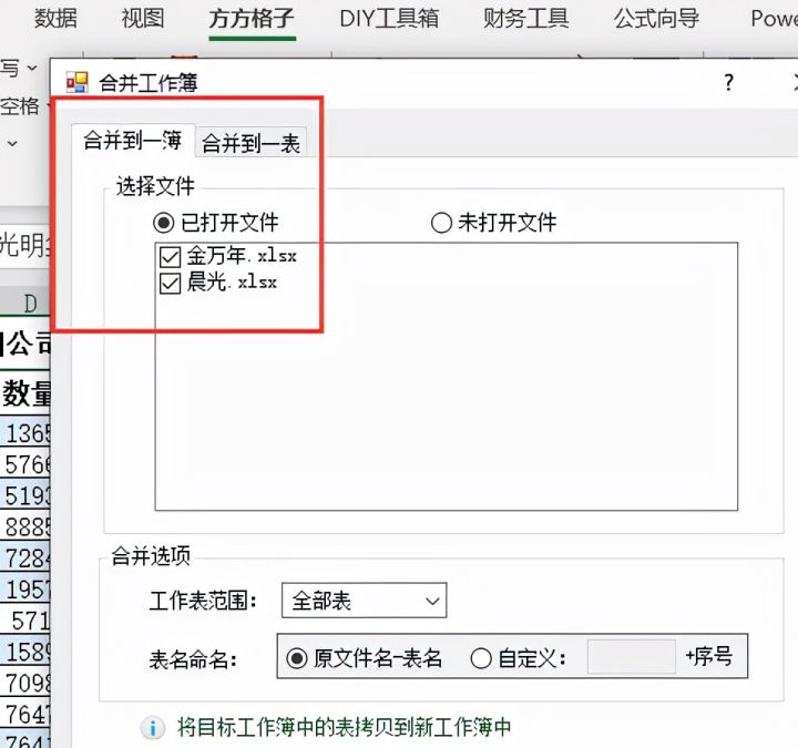 4.勾选要处理的工作簿