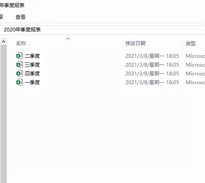 1.要求将文件夹中某公司2020各季度表格整理到一个工作簿中