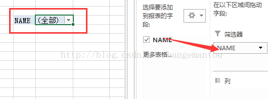 第二步:用NAME列创建数据透视表并把NAME字段放到筛选器中