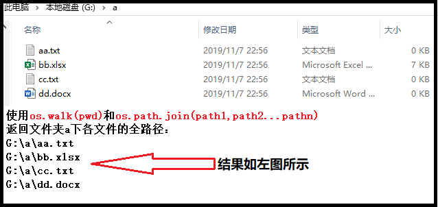 1['G:\a\aa.txt','G:\a\bb.xlsx','G:\a\cc.txt','G:\a\dd.docx']