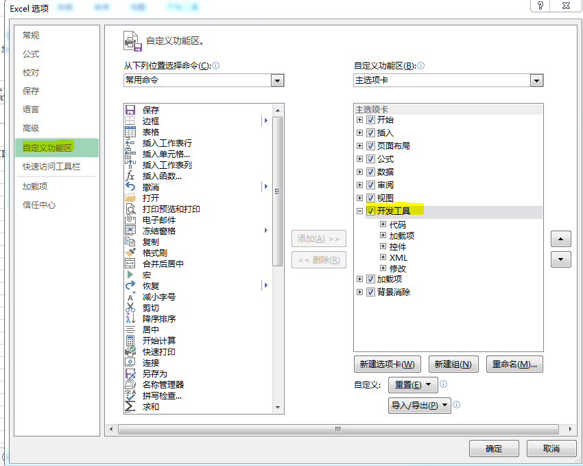 点击左上角office按钮-->选项-->自定义功能区-->勾选开发工具。