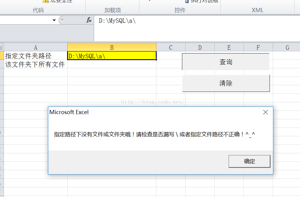 MsgBox ("指定路径下没有文件或文件夹哦!请检查是否漏写 或者指定文件路径不正确!^_^")