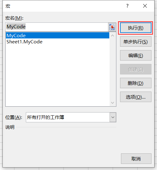 2.也可以回到Excel页面Alt + F8 查看宏命令,在窗口中执行