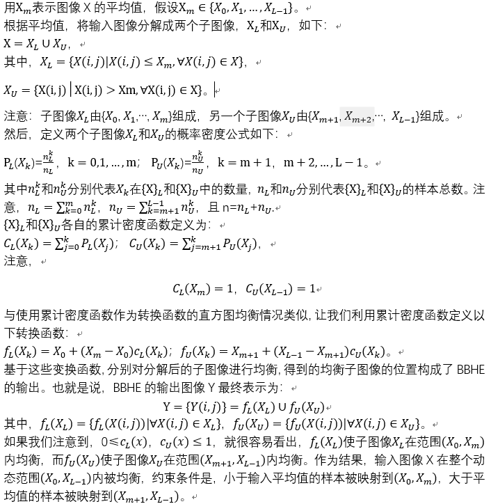 是一种基于图象均值来分割输入图像,得到两幅子图,一幅是像素值小于或等于均值的样本集,另一幅是像素值大于均值的样本集。分别独立的进行直方图均衡化。