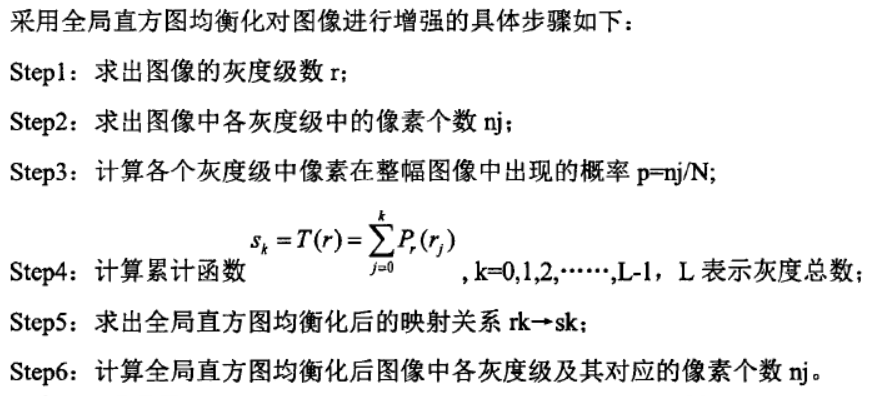 为了有利于数字图像处理,必须引入离散形式,r_k代表离散灰度级,并且有下式成立: