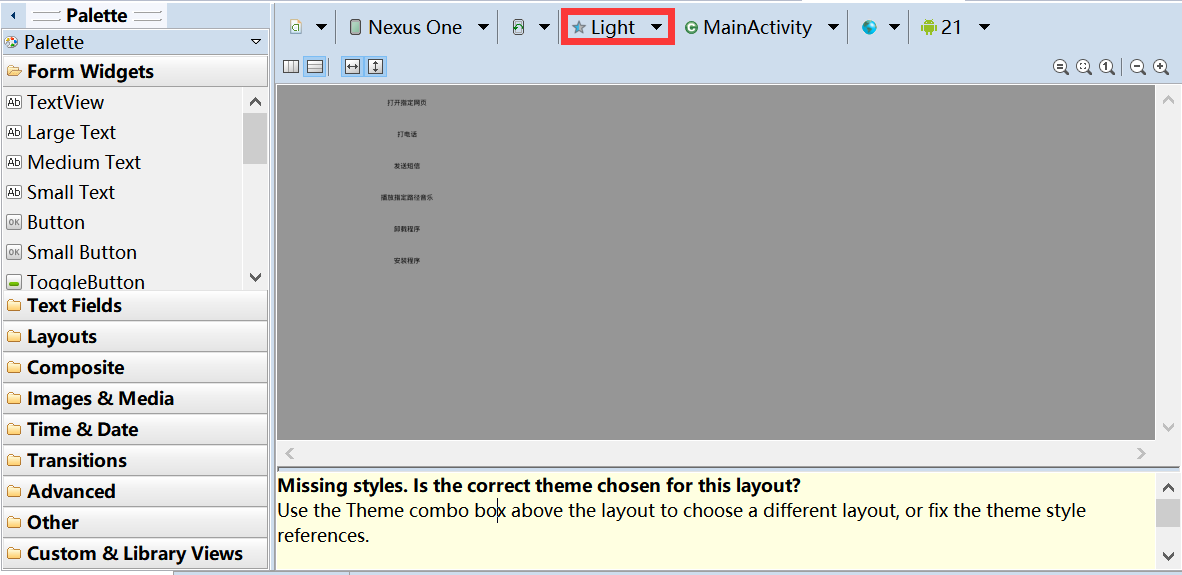 导入文件时,我们有可能出现Missing styles. Is the correct theme chosen for this layout?问题。