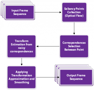 对于视频稳定,我们需要捕捉视频的两帧,估计帧之间的运动,最后校正运动。