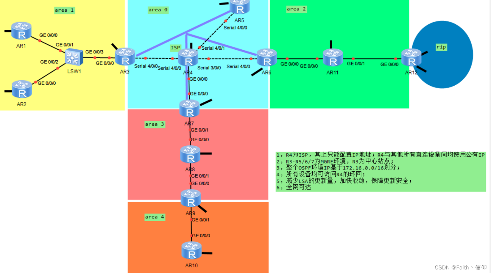 3.整个0SPF环境IP基于172.16.0.0/16划分;