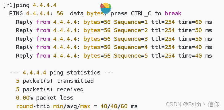 [r12-ospf-1-area-0.0.0.2]ping -a 172.16.176.1 4.4.4.4