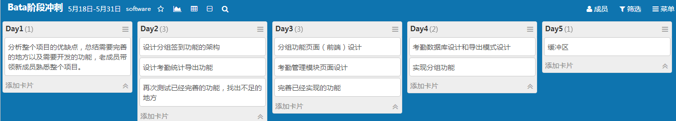 | 童毅南 | 设计考勤统计的功能 | 完成5.19博客 | 14.5% |