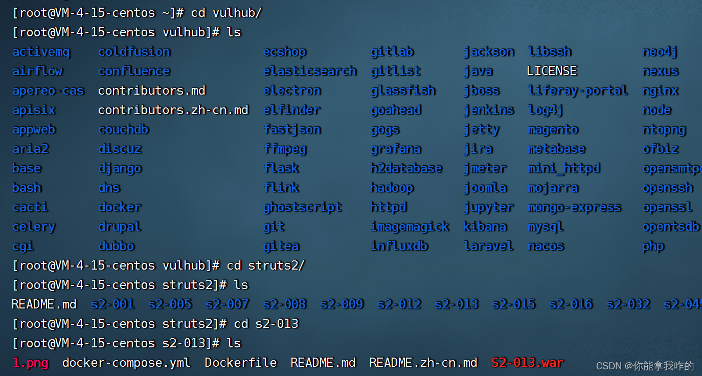 通过cd命令进入达到vulhub的靶场文件的位置。