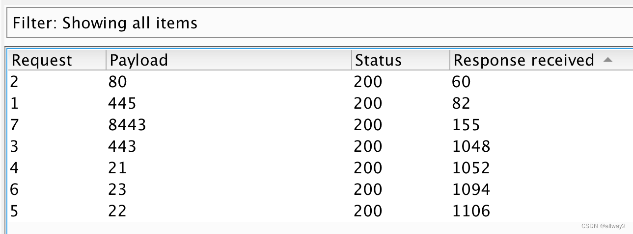 该研究人员没有像前面的示例那样调用外部 DTD 或本地文件,而是指示服务器在指定端口上调用其 localhost (127.0.0.1)。如果端口打开,服务器会快速响应。如果端口关闭,服务器将响应 ICMP Port Unreachable 消息,这需要时间,因为套接字会尝试重新协商握手。在这种情况下,有效端口和无效端口之间的不同响应时间足以盲目映射内部主机的端口。在 burp intruder 中扩展同样的攻击会导致以下结果:
