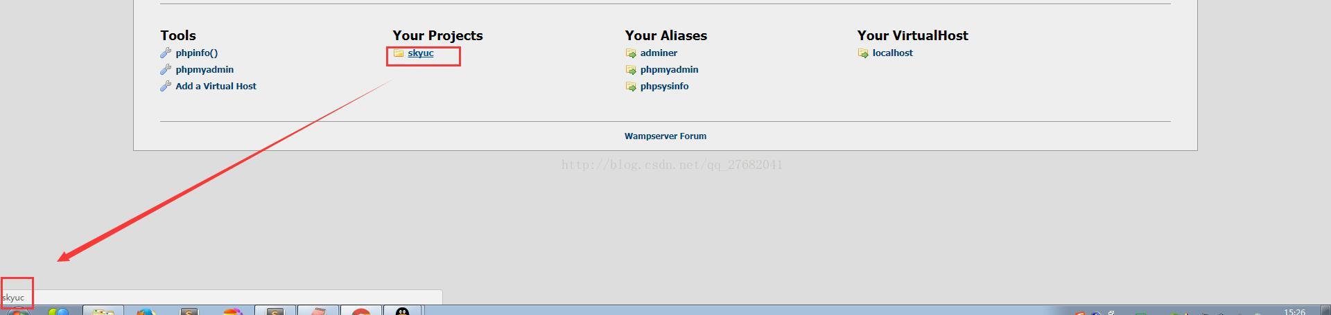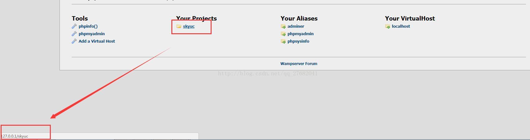 但是,装完wamp发现了一个bug,就是每个工程的访问地址是错的,如下图所示: