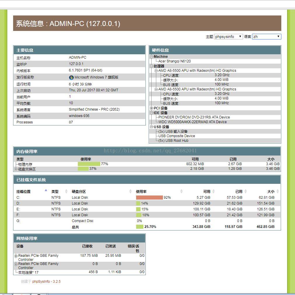 PhpSysInfo是查看系统信息的,截图如下: