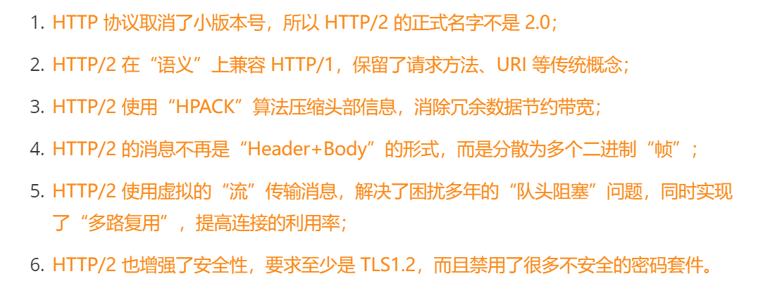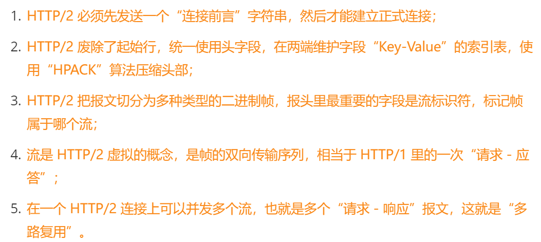 以二进制方式传输(相对于http1.0,http1.1 ascii字符串传输)