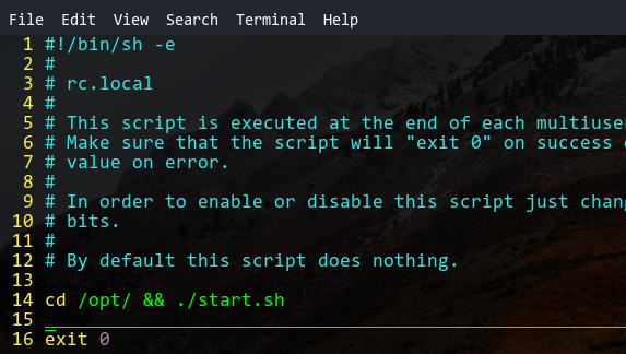 注意,你的命令应该添加在:exit 0 之前