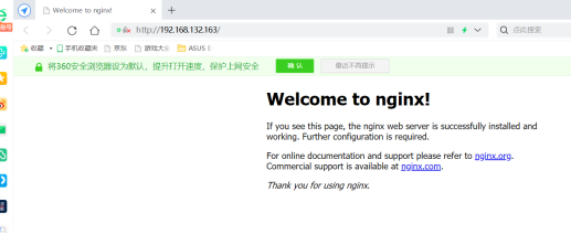 - Windows浏览器中输入192.168.132.163访问,发现如下页面,nginx运行正常,如下图: