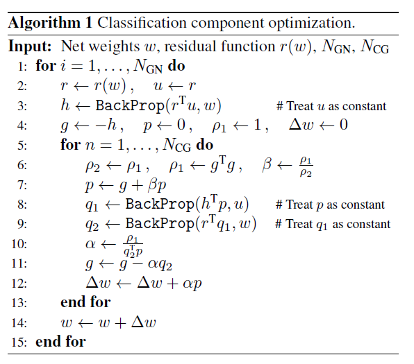 文章采用共轭梯度算法来求解上面的问题,用pytorch来实现。方法只需要函数r(w)来评估误差就可以简单的实现。具体推到见论文。