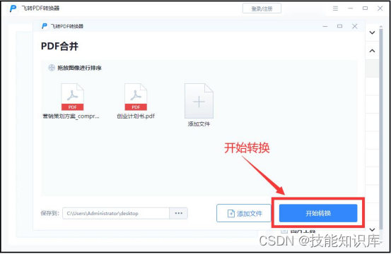 ③ 文件添加进来后,我们点击【开始转换】,这样PDF文件就会合并到一起啦。
